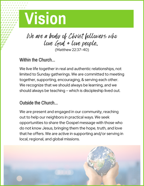 The vision of Keno Open Bible Church is what Jesus said are the greatest commandments and are a guide on how to approach relationships both with God and with others.